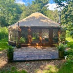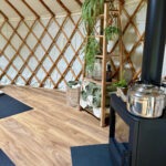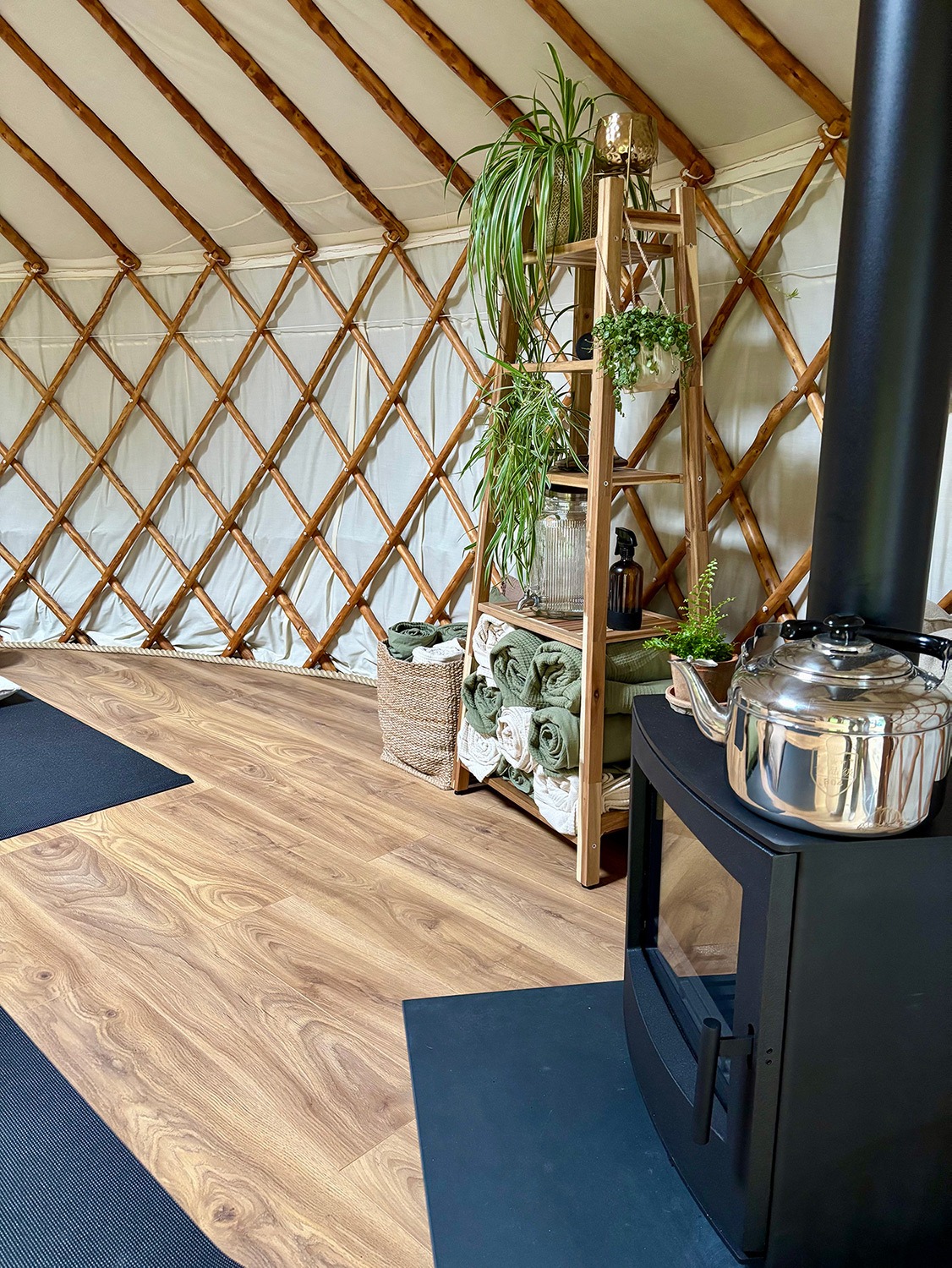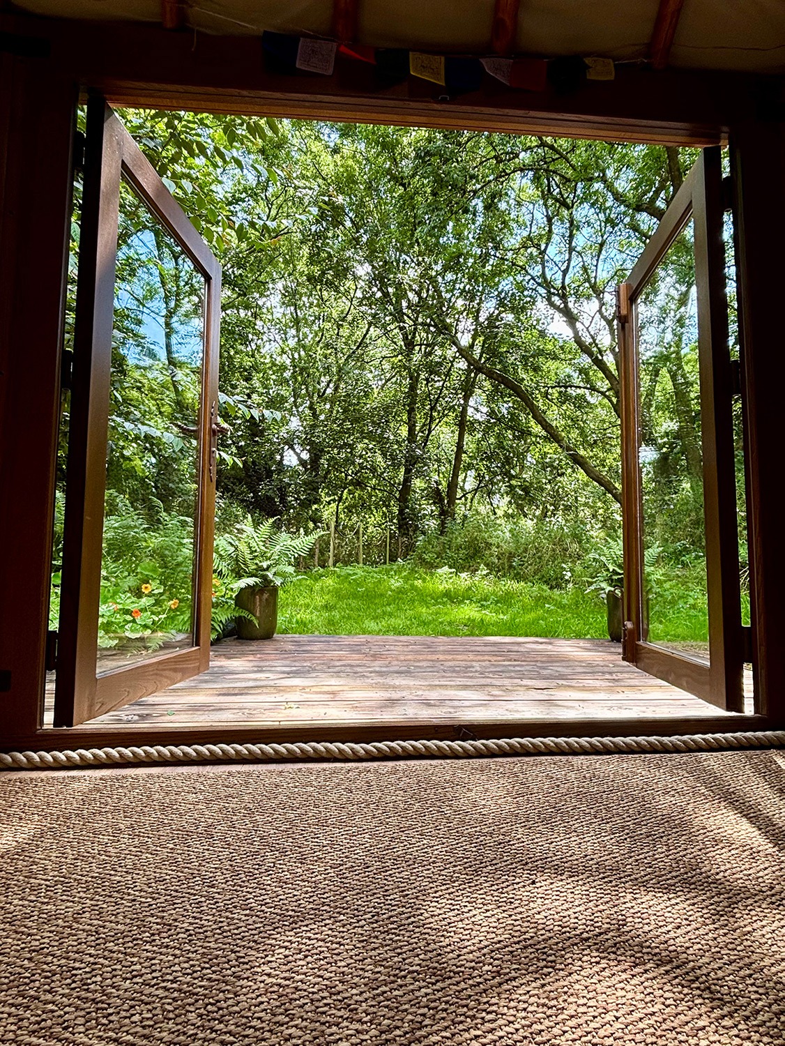 The yurt is a hand-built, circular structure, designed to support comfort, containment, and engagement. Circular spaces are perceived by the brain as safe and harmonious, enhancing regulation and focus. Inside, the yurt is warm, inviting, and eco-friendly, powered by solar energy and heated with wood grown sustainably on the land. This approach reflects a reciprocal relationship with the land: as we benefit from its restorative, regulating qualities, we also give back through careful, gentle stewardship. Every detail of the space, from the materials to the layout, has been chosen to nurture wellbeing.